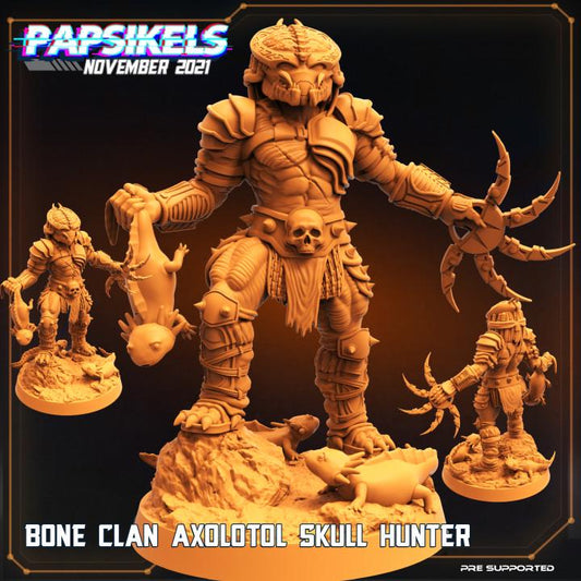 Axolotl Skull Hunter Resin Miniature - 32mm Fantasy Tabletop RPG Figurine - Bone Clan Warrior