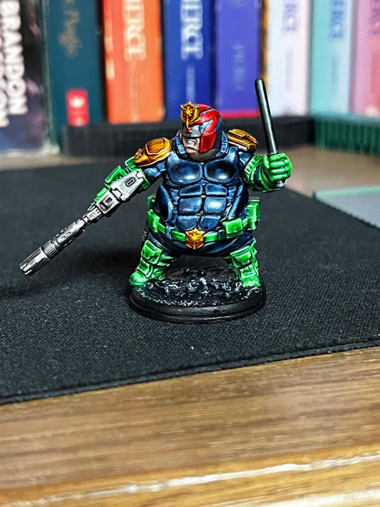 Cyberpunk Law Enforcer Miniature: 32mm Junaldo Upholder Figure for RPG and Tabletop Gaming