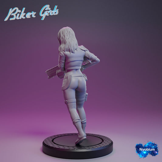 Cyberpunk, Cyberbabe Biker Girls Jen Explosive Blonde Pose 1, Cyberpunk, Papsikels, 32mm Mini