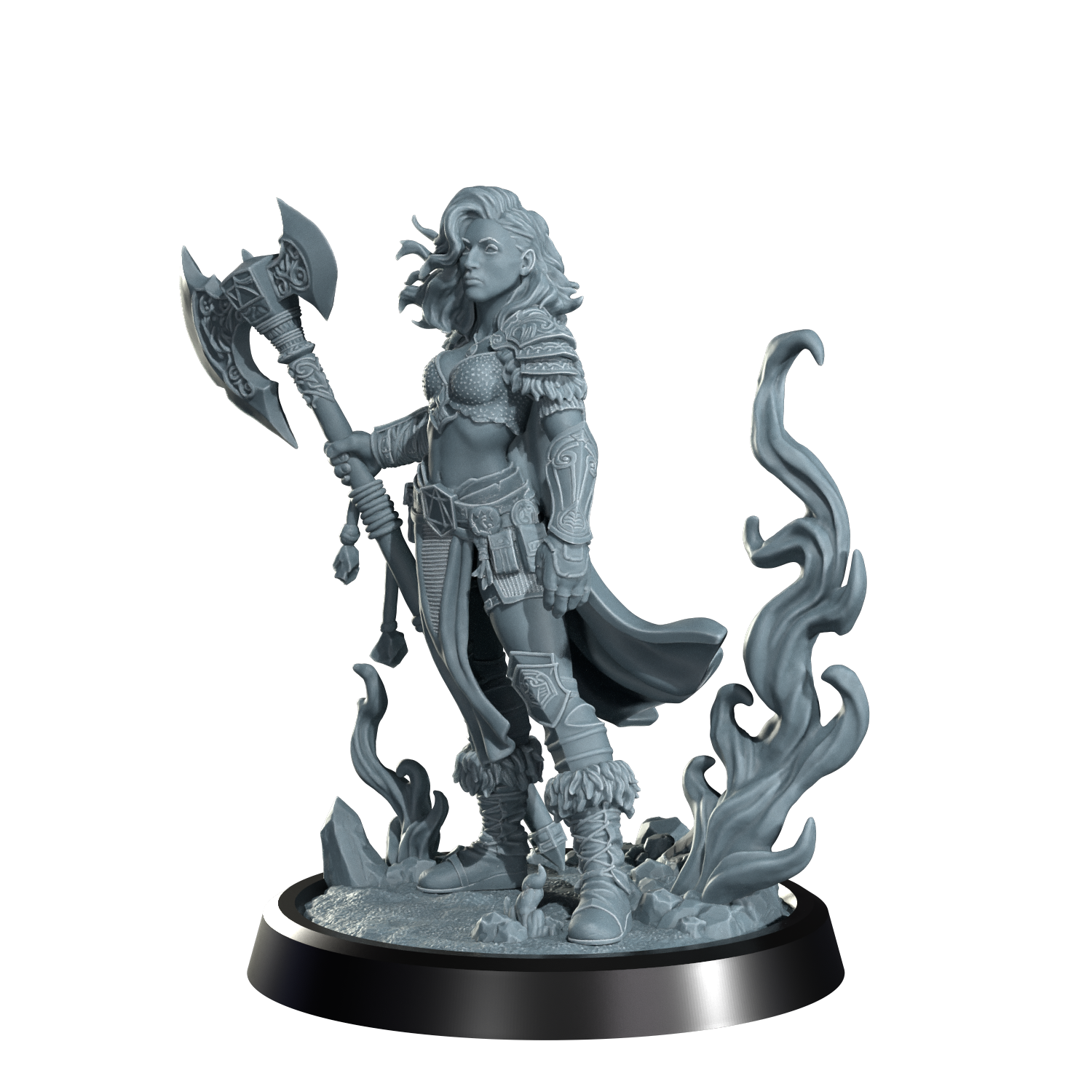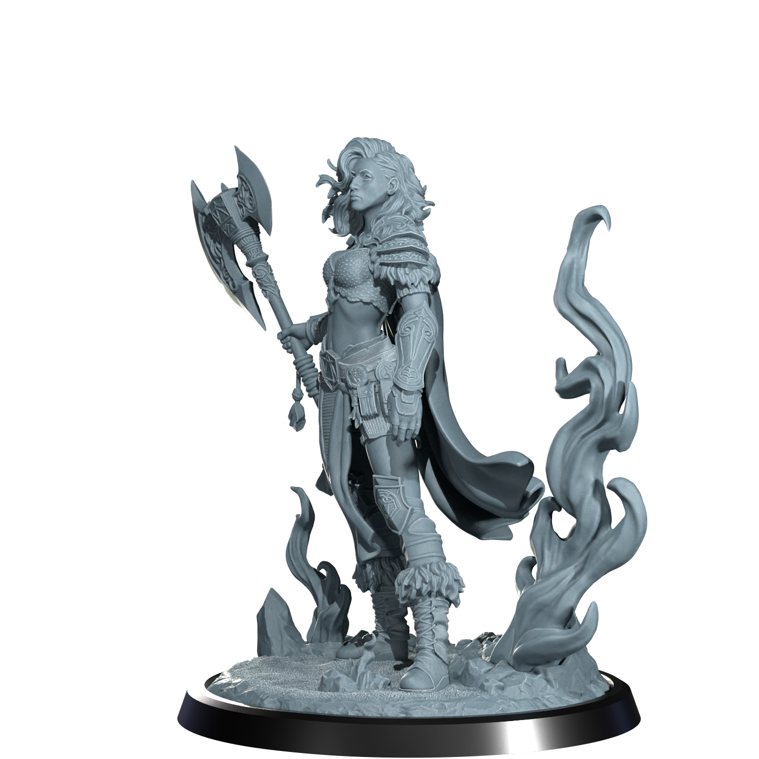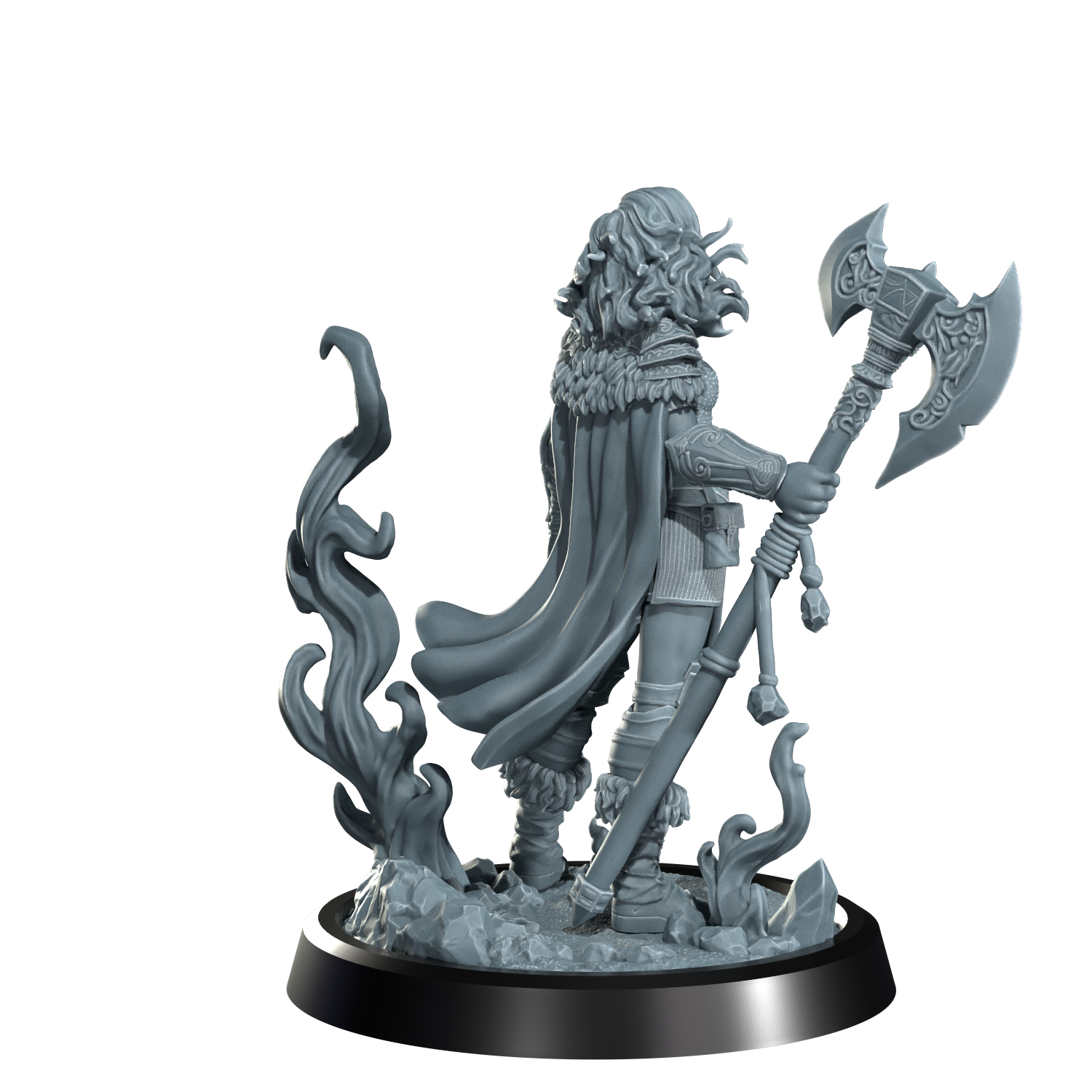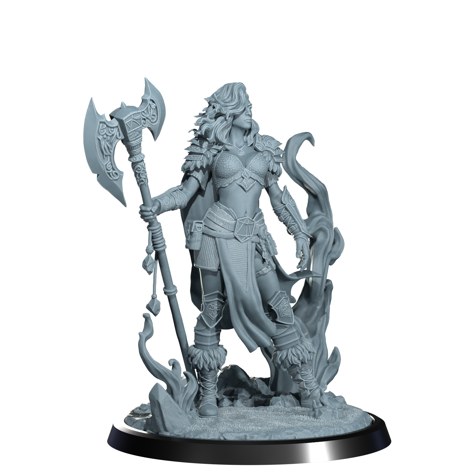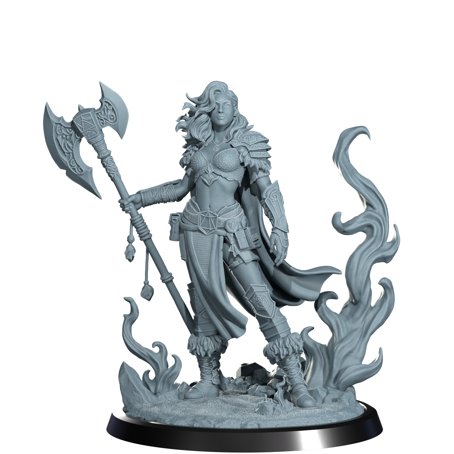 Ignara Flameborn, Fire Genasi Barbarian | Dungeons and Damsels | Cosmondo | 28mm, 32mm, 75mm | Dungeons & Dragons | TTRPG | RPG | Resin