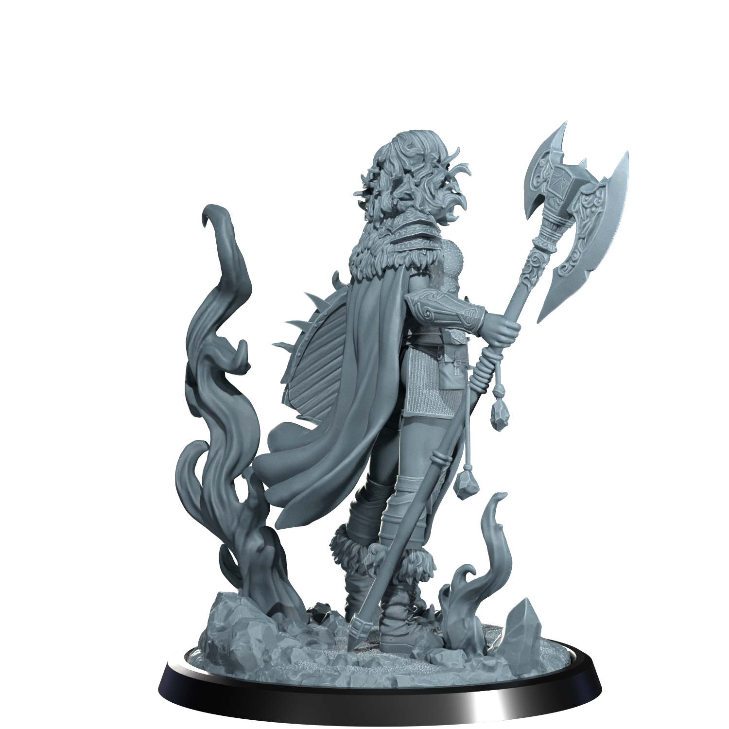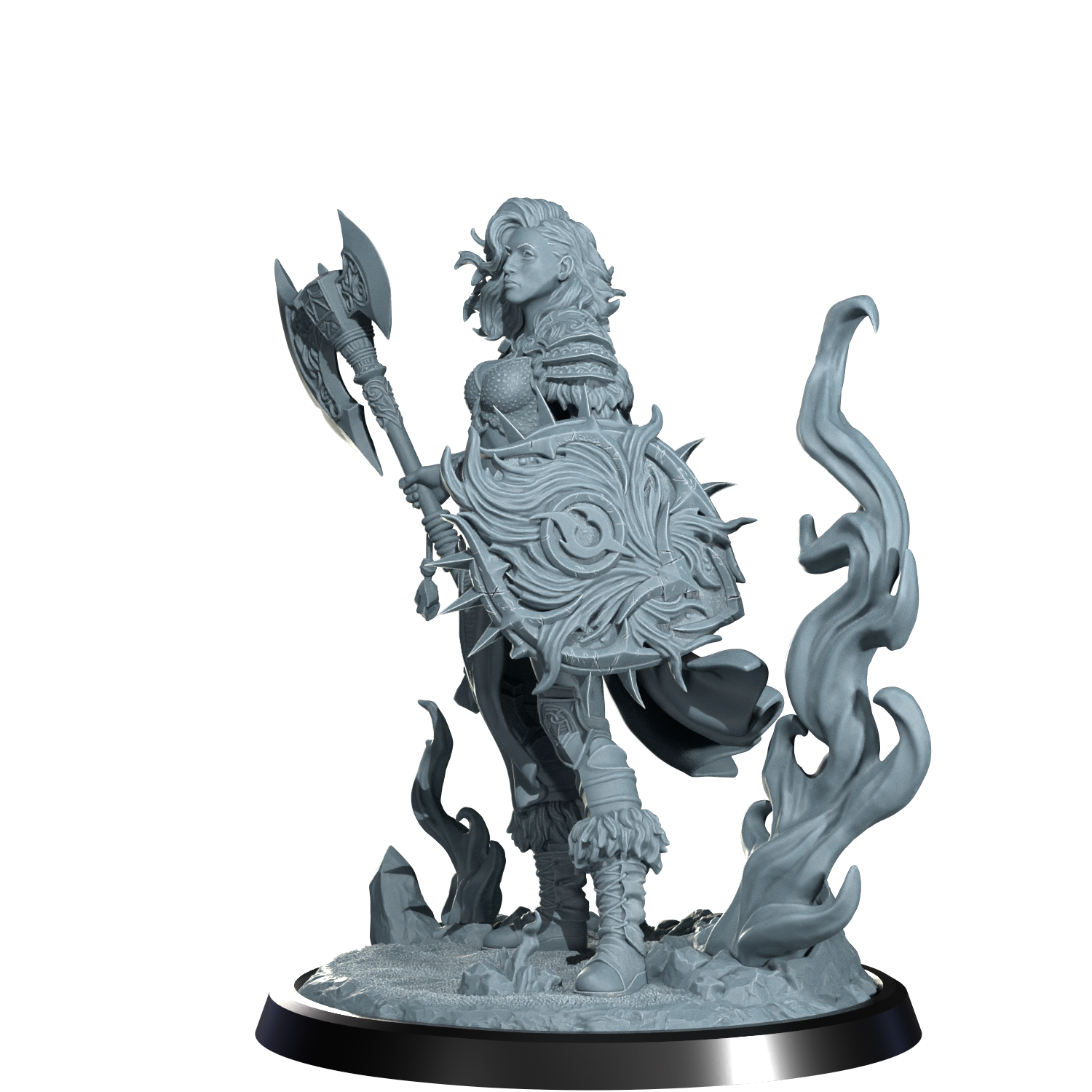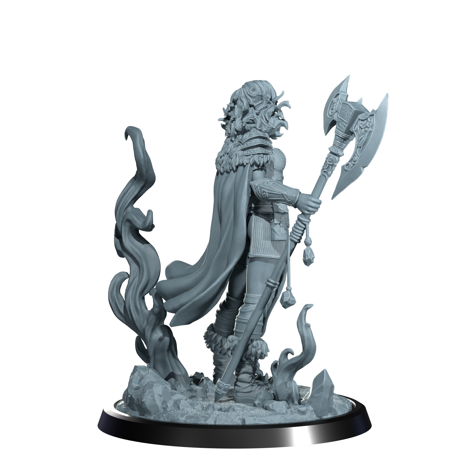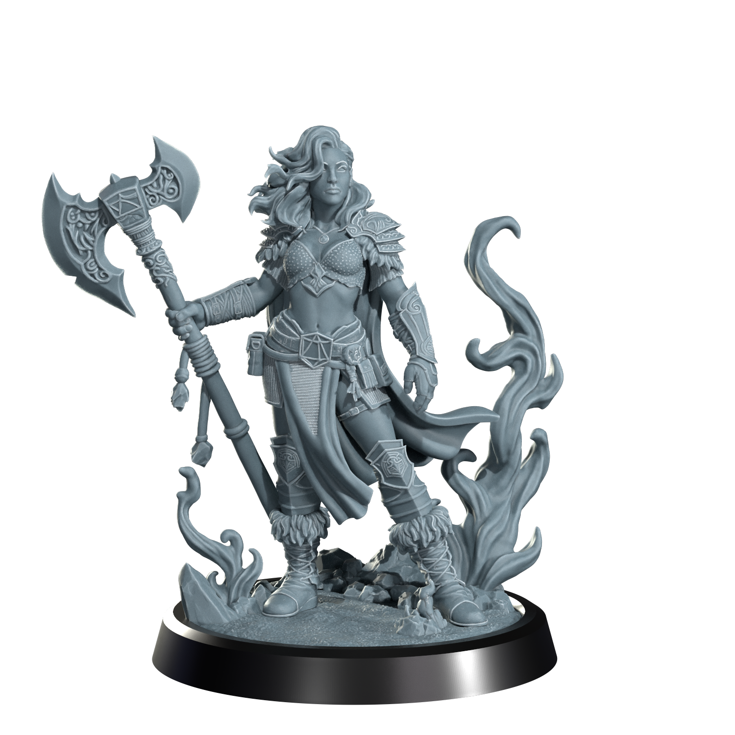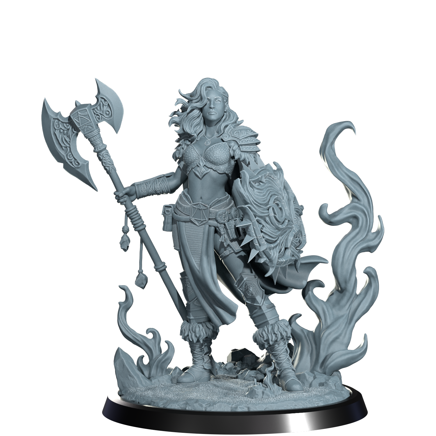 Ignara Flameborn, Fire Genasi Barbarian | Dungeons and Damsels | Cosmondo | 28mm, 32mm, 75mm | Dungeons & Dragons | TTRPG | RPG | Resin